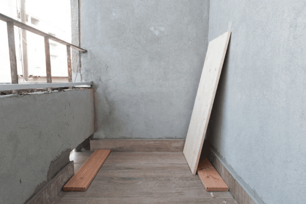 Transformarea balconului într-o terasă de vis a început cu procesul de curățare și nivelare a podelei. După golirea zonei și o curățare temeinică, prima etapă de amenajare a constat în repararea podelei, în cazul de față aceasta fiind înlocuită cu o gresie. Produsul a fost ales ținând cont de faptul că podeaua balconului este permanent expusă schimbărilor de temperatură, ploii și zăpezii.