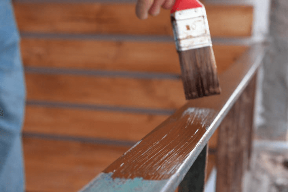 Bar de lemn de-a lungul balustradei